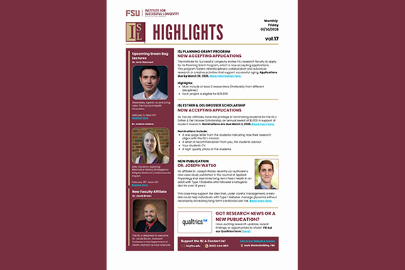 Living well means many things, so we draw on the talents of researchers in many fields across the Florida State University campus to look at health, cognition, recreation, mobility, financial security and other concerns.