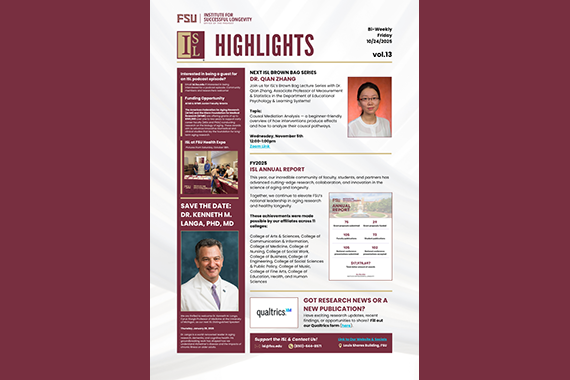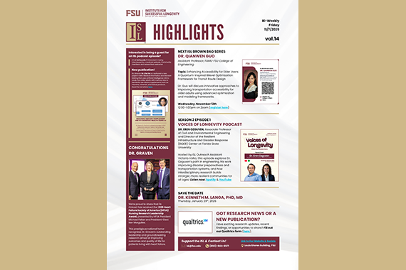 Living well means many things, so we draw on the talents of researchers in many fields across the Florida State University campus to look at health, cognition, recreation, mobility, financial security and other concerns.