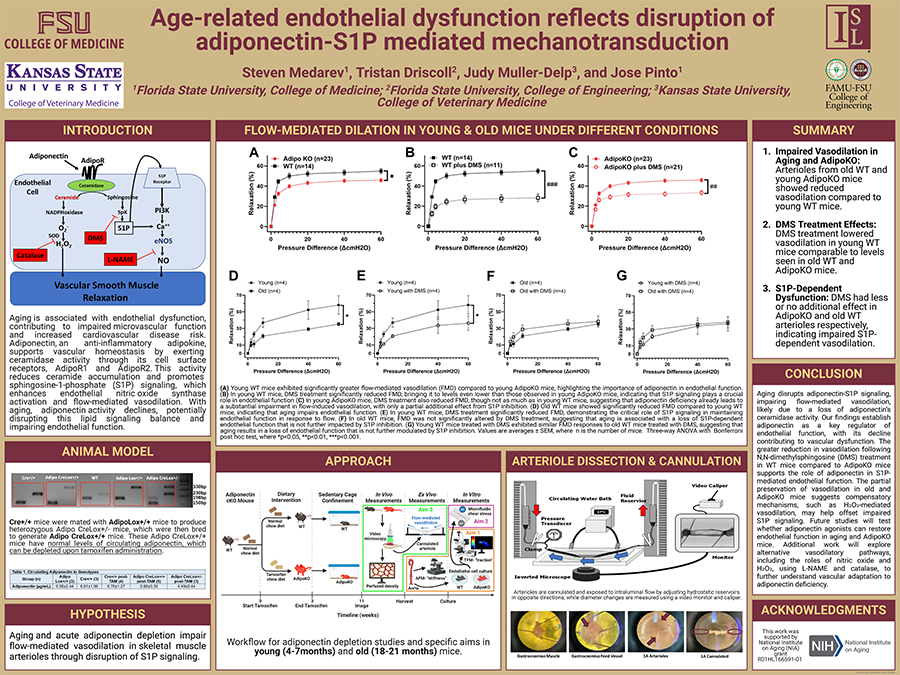 Ph.D. candidate in Biomedical Sciences at the College of Medicine. His research focuses on adiponectin, a protein crucial to vascular health, especially under stress from aging or metabolic disease. His work aims to understand how adiponectin supports endothelial function, potentially leading to new strategies for preventing cardiovascular complications.