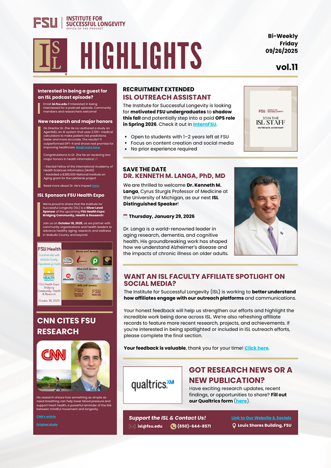 Do you have research, news, or announcements you'd like us to feature? Submit content through our Qualtrics form or email us at isl@fsu.edu.