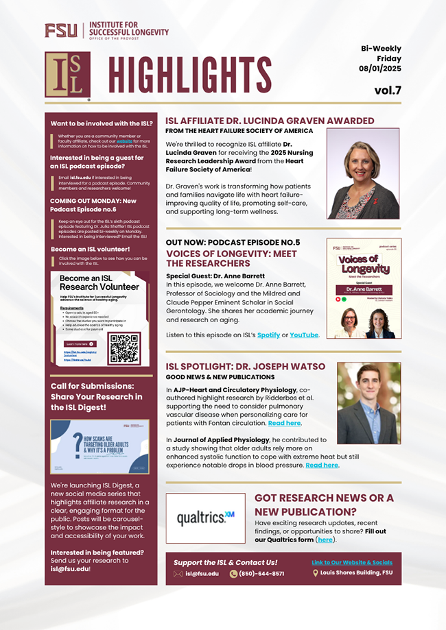 In this issue, we’re excited to highlight a major award received by an ISL affiliate, a new episode of the Voices of Longevity podcast, a call for submissions for ISL Digest, our new social media series, affiliate spotlight, and much more.