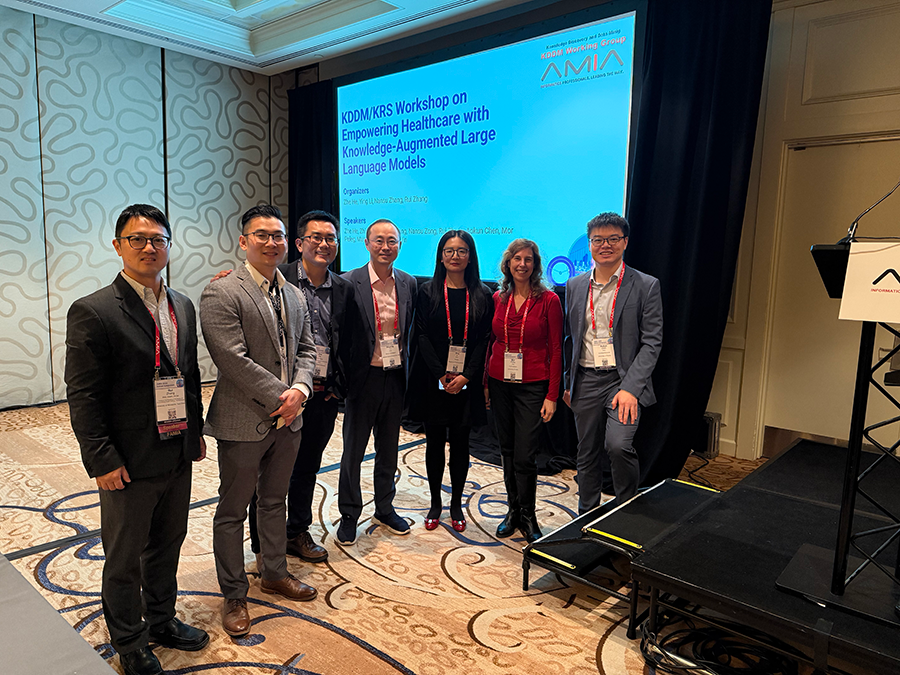 At AMIA 2024, Dr. He led a highly attended pre-symposium workshop on “Empowering Healthcare with Knowledge-Augmented Large Language Models”. The session drew an audience of approximately 180 participants and addressed critical challenges posed by generative LLMs like OpenAI’s ChatGPT and Meta’s LLaMa 2, including accuracy, preconceived notions and safety concerns in health contexts.