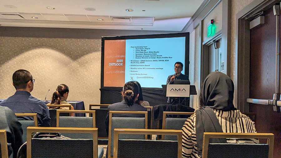 The workshop, a collaboration between AMIA’s Knowledge Discovery and Data Mining (KDDM), and Knowledge Representation and Semantics (KRS) Working Groups, explored cutting-edge techniques such as Retrieval-Augmented Generation (RAG), contrastive learning, LLM finetuning, and zero-shot/few-shot learning. Presenters include leaders from National Library of Medicine, Weill Cornell Medicine, Mayo Clinic, University of Minnesota, University of Florida, and University of Haifa. Attendees engaged in discussions about applying these methods to develop robust tools for medical question answering, diagnostic systems, and patient care applications while addressing issues of explainability and ethical deployment in healthcare.